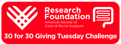 30 For 30 Campaign for Giving Tuesday Express your radical generousity on Giving Tuesday, November 30th, by supporting research and educational programs related to colon and rectal diseases through a tax-deductible "30 for 30" contribution to the Research Foundation of the American Society of Colon and Rectal Surgeons. Level 1 - Champion: Contribute $30 for 30 days leading up to Giving Tuesday (or $900 lump sum) Level 2 - Partner: Set a goal to get up to 30 individuals to contribute $30 (up to $900) Level 3 - Friend: Contribute $30 on November 30th ($30) Grants awarded by the Research Foundation have touched the lives of students and general surgery residents who are considering colorectal surgery as a career, colorectal surgeons who want to further their research knowledge, and, in the long run, patients who benefit from the focus on research. Make Your Gift Today